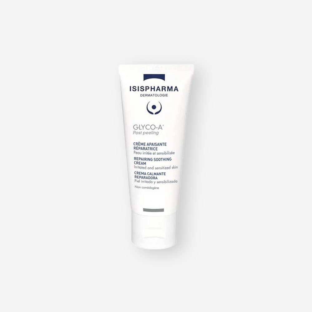 Isispharma A‑Post Peeling Glyco is a specialized restorative care cream designed to comfort and rebalance skin after superficial chemical peels, especially glycolic acid treatments. Post‑peel skin can feel tight, sensitive, and reactive; this formula helps calm discomfort while restoring hydration and supporting the natural skin barrier.