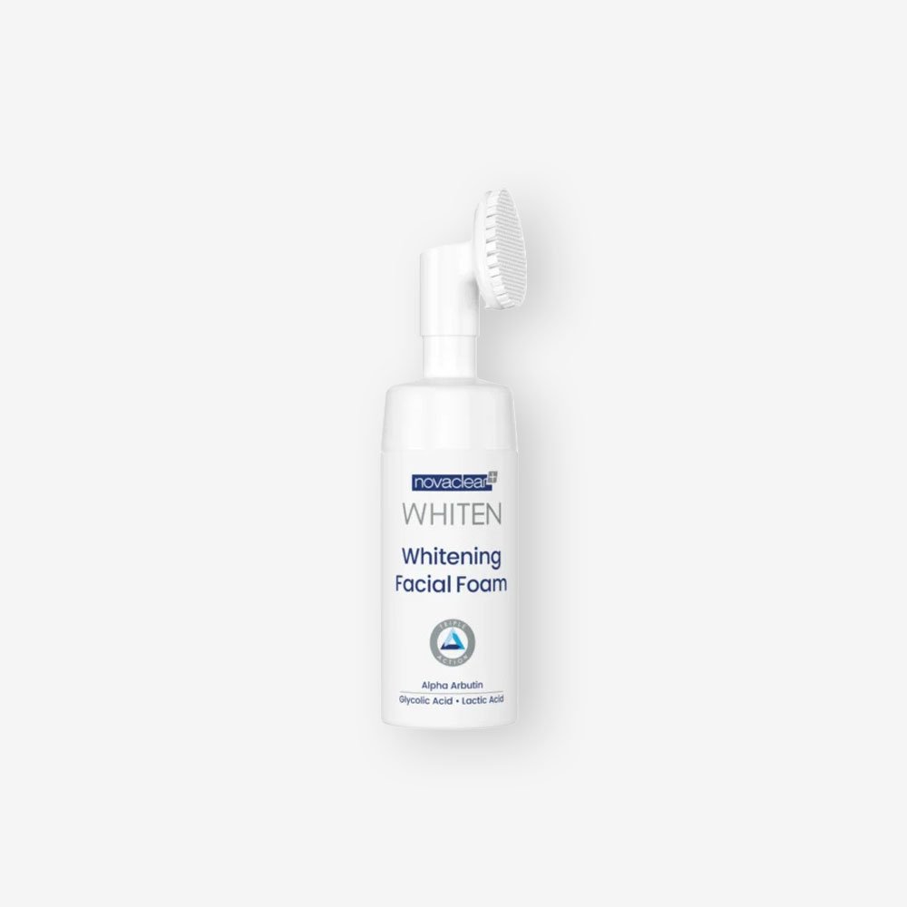 Novaclear Whitening Facial Foam is a soft foaming cleanser designed to help lift away impurities, excess oil, and makeup while supporting a brighter-looking, more even-toned complexion. Formulated to target dark spots, dullness, and uneven skin tone, it features Alpha Arbutin plus gentle exfoliating acids for a smoother feel. Suitable for all skin types, including sensitive and pigmented skin.